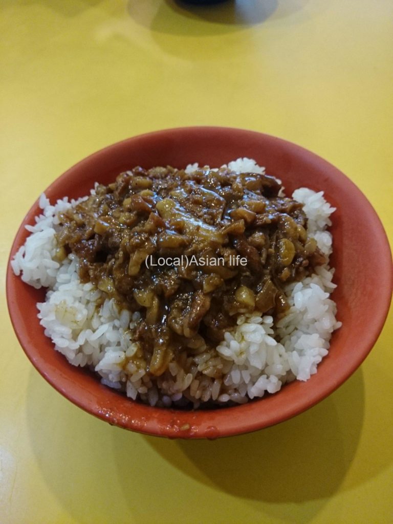 ちなみにルーローハンとは、「甘辛いタレで煮込んだ豚バラ肉をご飯に盛りつけた、台湾屋台料理」とのこと。私の認識はシンプルで「パクチー混じった安くてうまい細切れ角煮飯」です笑
