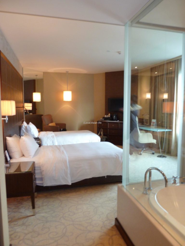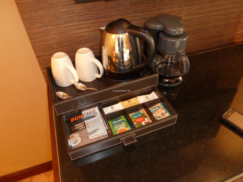 お高いホテルだけありますので、当然、レセプションホールからしてとても豪華なことです。西欧的な暗め照明と落ち着いた調度品で五つ星感たっぷり。こちらも同じ5つ星かつASEAN圏なんですが、ターゲットとする客層の違いが明確にわかりますよ汗。
