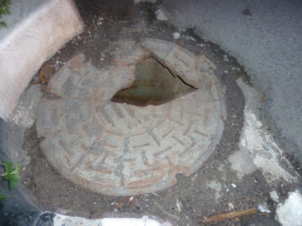 これはまだ蓋がありますからマシですが、綺麗な歩道を歩いていても蓋がないマンホールがあったり、上に乗った瞬間に蓋ごと下水に落ちる、という事故のも、ままタイローカルニュースで見る、と後日慣れ親しんだ後に知ることになりましたが。