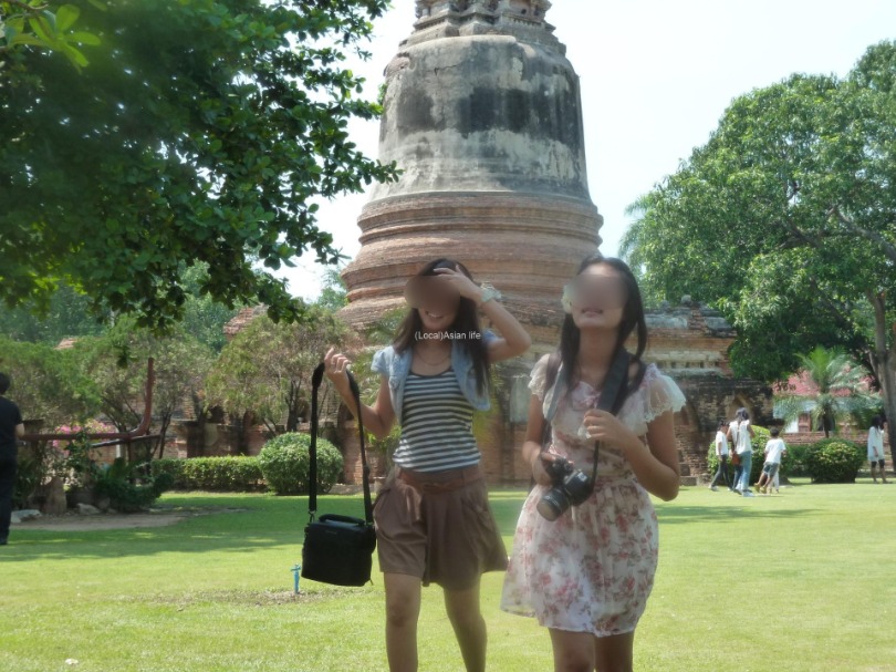 タイ国内でもアユタヤは観光地として著名故、タイのお姉さん方も暑いなか大勢いらっしゃいます、お疲れ様です、可愛らしい服が実に見目麗しく。終わらない夏の国最高です。