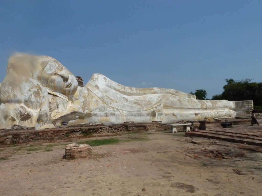 お次に連れていかれたのはワット ローカヤスタラーム/Wat Lokaya Sutharam。少し前に綺麗(無機質ともいえる)に塗りなおされてしまいましたが、本来的にはこのような未塗装&アユタヤ最大の超大型寝仏があります。