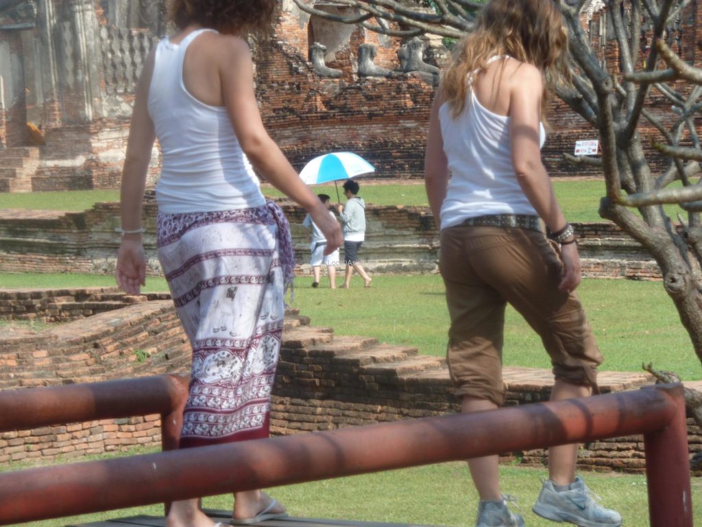 そしてチェンマイ等のメジャー観光地も同様ですが、アユタヤも白人旅行者、取り分けバックパッカー属性がたくさんいらっしゃいますね。この日も綺麗なお姉様方がたくさんいらっしゃいましたが、皆様、総じてタンクトップ。この強すぎる日差しの中、肌ケアは大丈夫なのでしょうか。