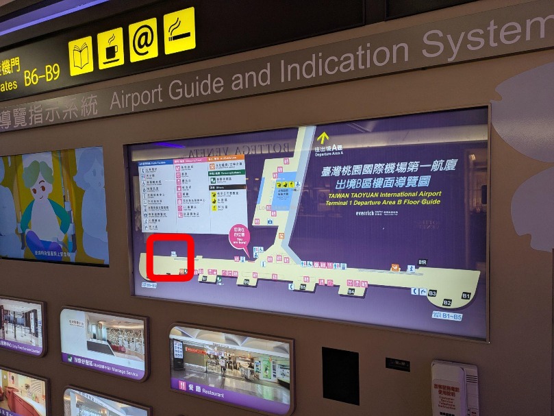 桃園国際空港の場合、ANAの空港案内MAPでは制限エリア内の喫煙エリアについて、残念ながら明記はありません。悲しい。そんなタバコ嫌いですか。。