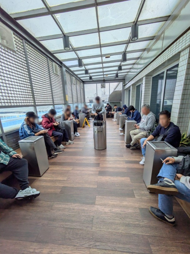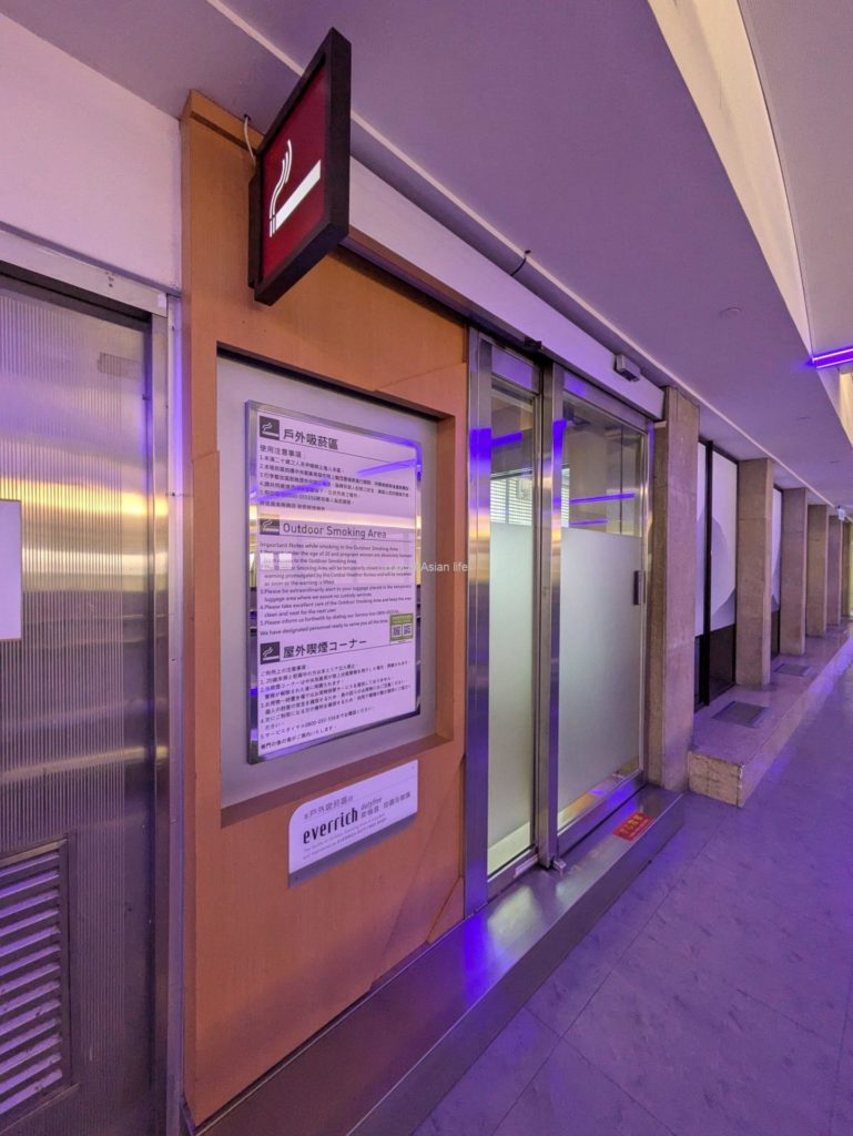 なお、先ほどお話しした通り、桃園国際空港が喫煙者に優しいな、と思う点として、「距離的にリーチしやすい」「(屋外なので当然)換気もよく、シガレット派も加熱タバコ派も快適」というところがありますが、何より「喫煙所迄、並びに喫煙所も屋根がある」のも大きいですね。