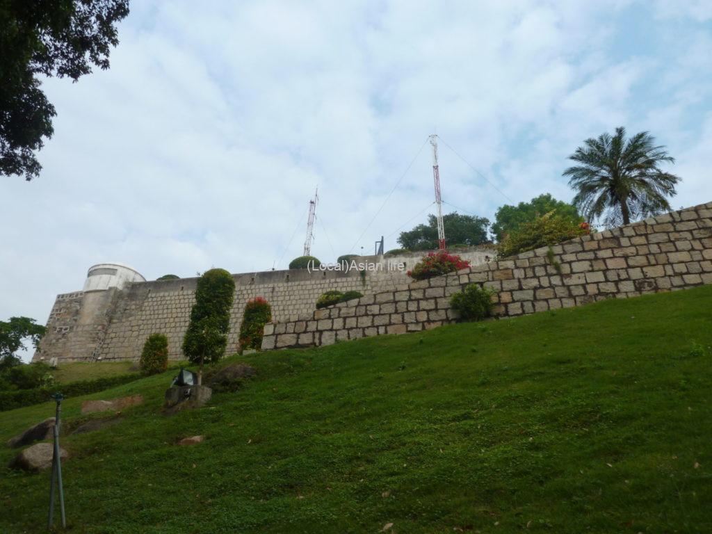 10数分歩きますと、やっとギア要塞の遺構が見えてきます。個人的にはマカオに限らずヨーロッパの旧植民地だった地域には、中華色あふれる下町と植民地時代の遺構が混在しており、言葉で説明が難しい奥ゆかしさがあって、チャイナ文化と同じくらい、私には大好物だったりします。