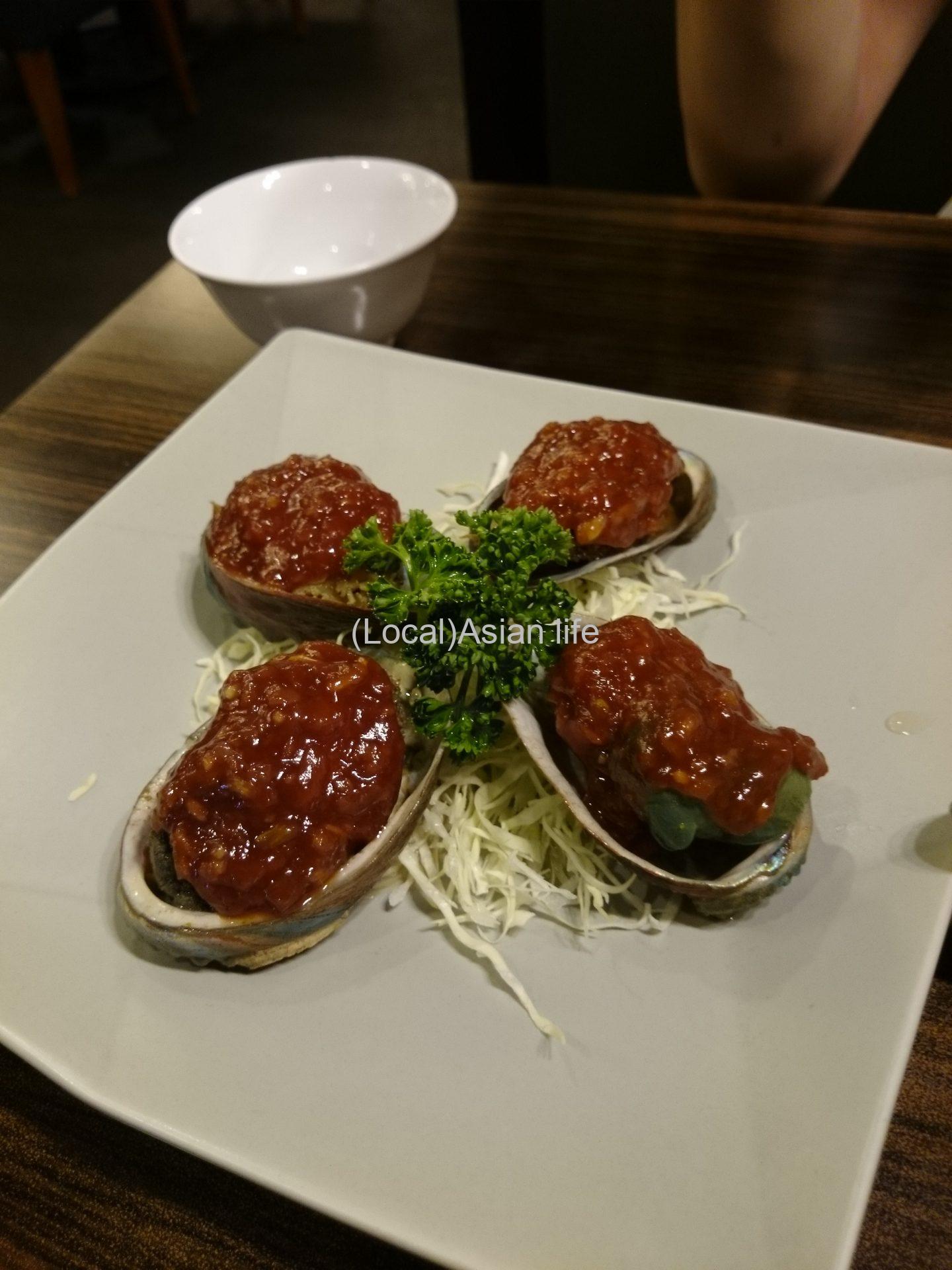 トコブシの何か。よくある南方中華では「素材の味、わからんやろ」ぐらいに香味、ニンニク並びにレッドチリが載せられてくるのですが、これは比較的素材の味を生かして日本的なお味。結局、上に乗ってるのは何だったのかは、、わかりません。。うまかったのでよしとしましょう。