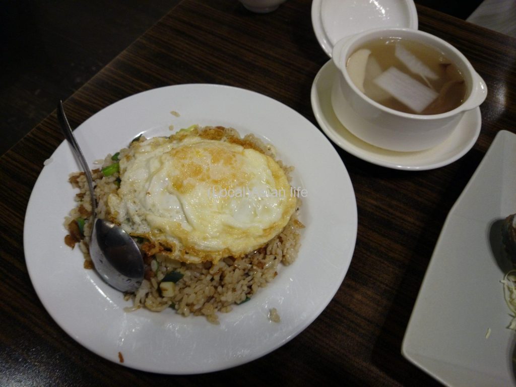 メニューの詳細は最早覚えてませんが、とりあえず困ったときはチャーハンを選べば鉄板。これが意外にあっさり潮州系の味でアタリです。卵焼きが上に乗ってる点が取っても東南アジア的。タイとかラオスでいう、カイダオですねー。右上の冬瓜?のスープも薄味でイケます。そしてこれも東南アジア的な組み合わせ。