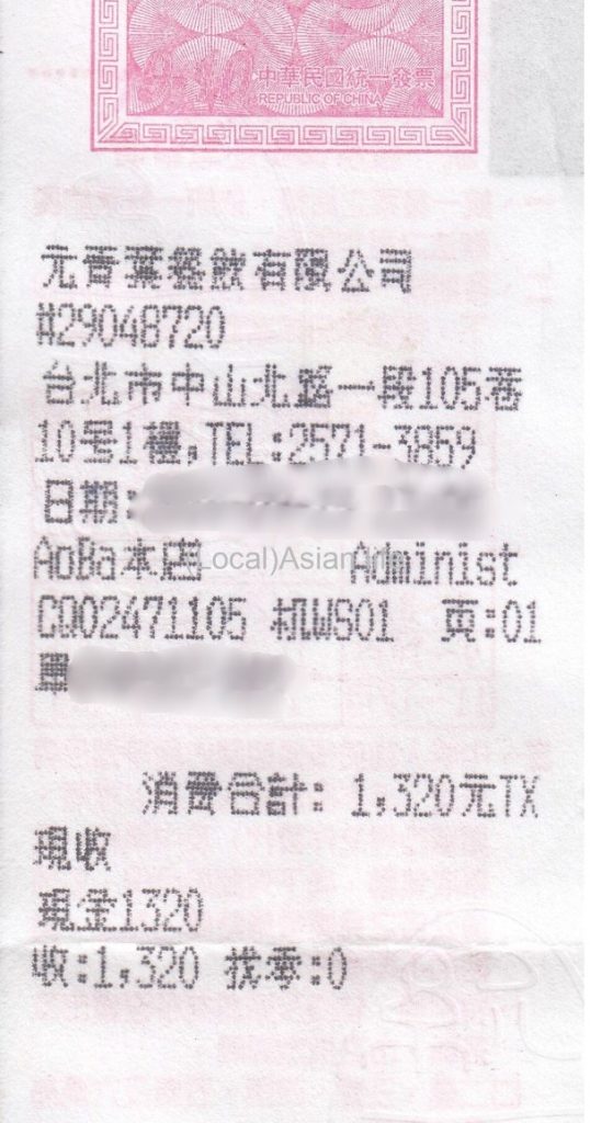 半面、高い・安いとかの値段面は優先順位としては重視しておらず、上記を満たして常識の範囲内の価格ならば何でもOK、同行者のAs you like任せ。というわけで、マッサージ店「シャイニングスター」が激しく空振りした後に寄った、林森北路付近のレストラン「青葉」。
