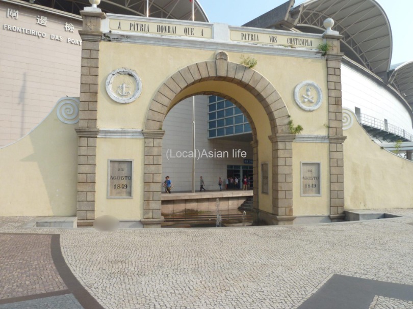 越境手続き向かいます。下記はゲート前のポルトガルっぽい、飾り門で昔々のゲートはここにあったよ、的なオブジェだろうと理解しました。