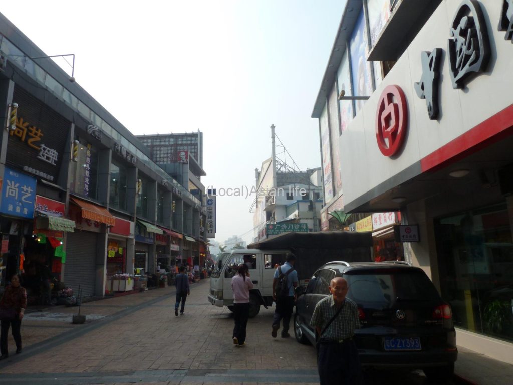 バスを待ってる間、暇なので町を散策してみます。どことなく香港の町外れみたいな感じで、中国本土でもこの辺りなら比較的快適に過ごせそうな気がします。まぁ昨今の事情鑑みると中国本土で日本人が働くのはかなりリスキーだと思いますので、今から望んでいく気はないです。