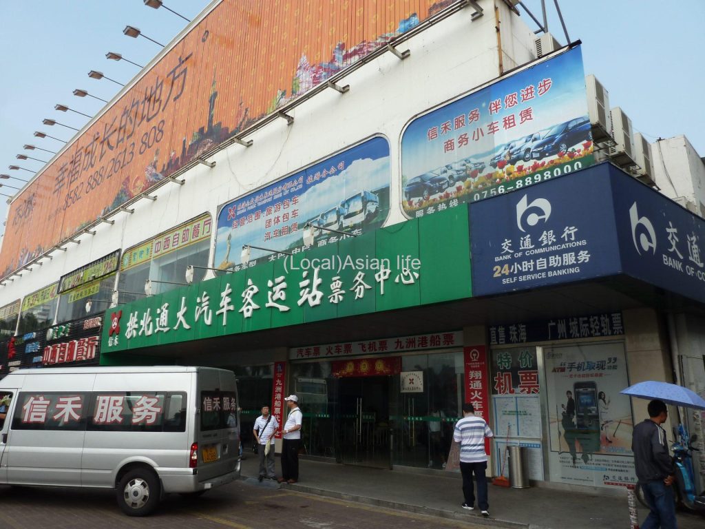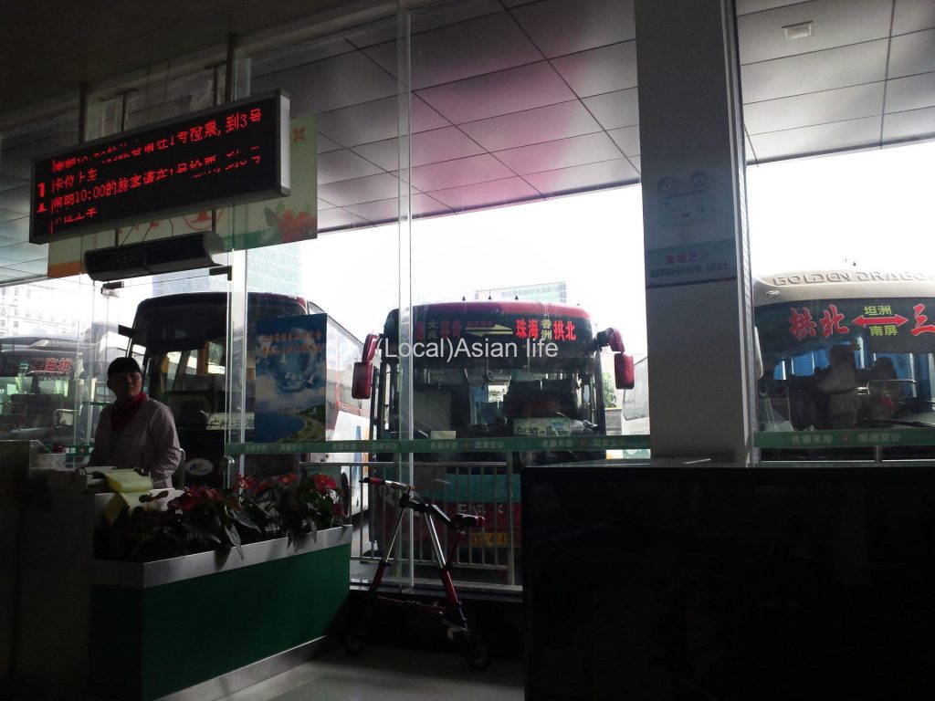 閑話休題。で、渡りきるとまさに真ん前に緑色の看板のバスチケット売り場があります。室内の写真は残っていませんでしたが、まぁ中国のどこにでも普通にあるチケット売り場です。位置的には下記のマップの場所ですが、ゲート出たら何も考えずにまっすぐ歩いて行っていただければよいかと。