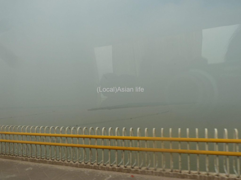 このバスに乗れば下川島に行くための港まで一直線です。概ね2~3時間ぐらい。ひたすら西へ南へ走ります。私、途中から爆睡。しかしながら、この空の汚さ、空気の汚さは何なんだ、海沿いなのに。