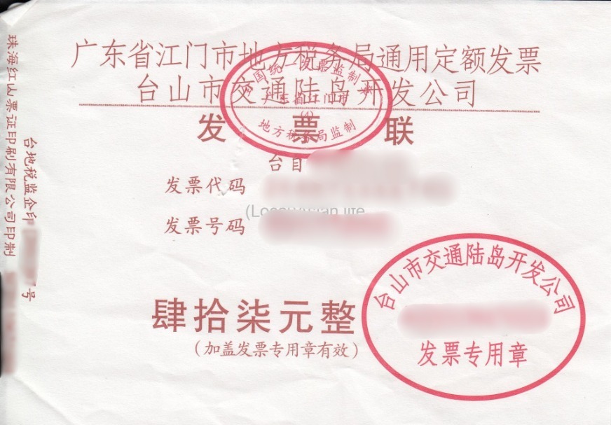 上記建物内窓口で「台山下川島」と伝える、ないし紙を渡すと直近のバス分のチケットを手渡され、同じ建物内部左手にある待合室みたいなところで、待てと言われます。尚、記憶では確かチケットは70元ぐらいだったかな?